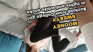 00:20Sockjob from college girl in tights and white socks